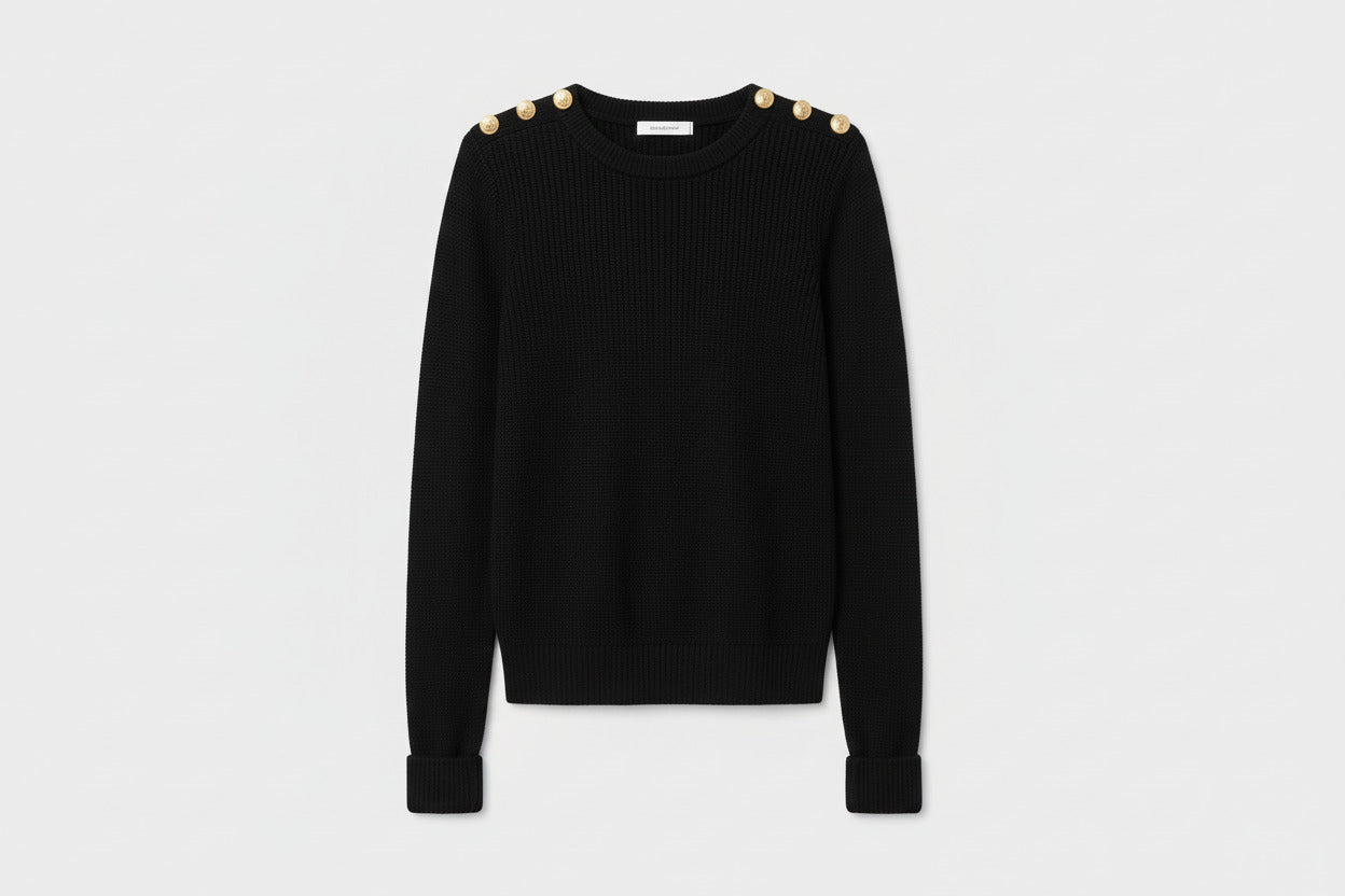 Elevate your everyday wardrobe with this sophisticated Portmans Long Sleeve Ribbed Knit Jersey. The classic ribbed knit construction offers a flattering, form-fitting silhouette perfect for layering or wearing solo. Eye-catching gold-toned button details on the shoulders add a touch of refined elegance, transforming a simple jersey into a statement piece. Versatile enough for casual outings or smart-casual occasions, this long sleeve essential pairs effortlessly with jeans, trousers, or skirts. A timeless addition to any collection.