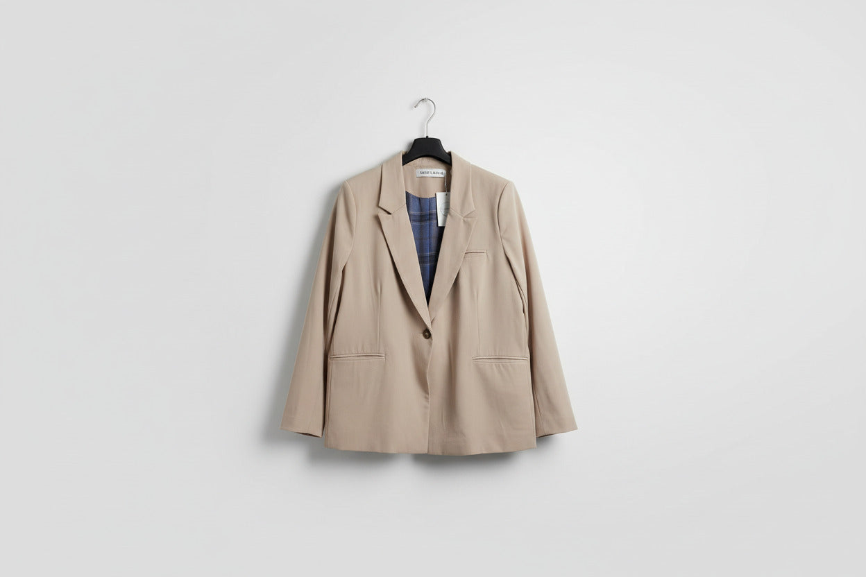 Elevate your workwear with this tailored single-breasted blazer from Ruby & Rain, a celebrated New Zealand designer. Crafted with a relaxed fit that balances structure and