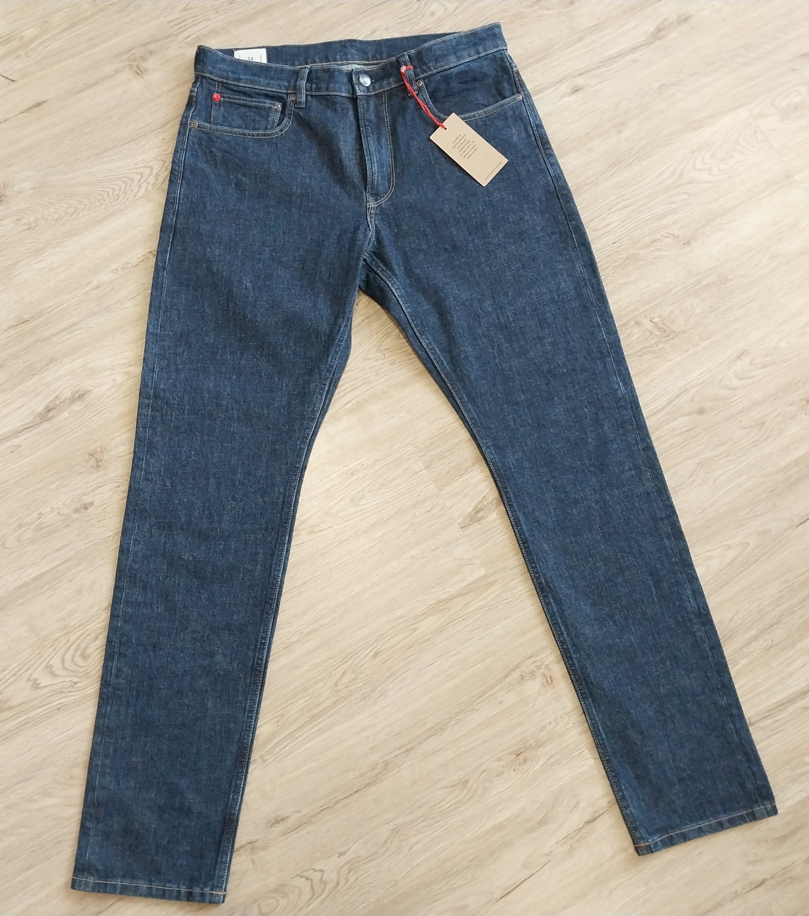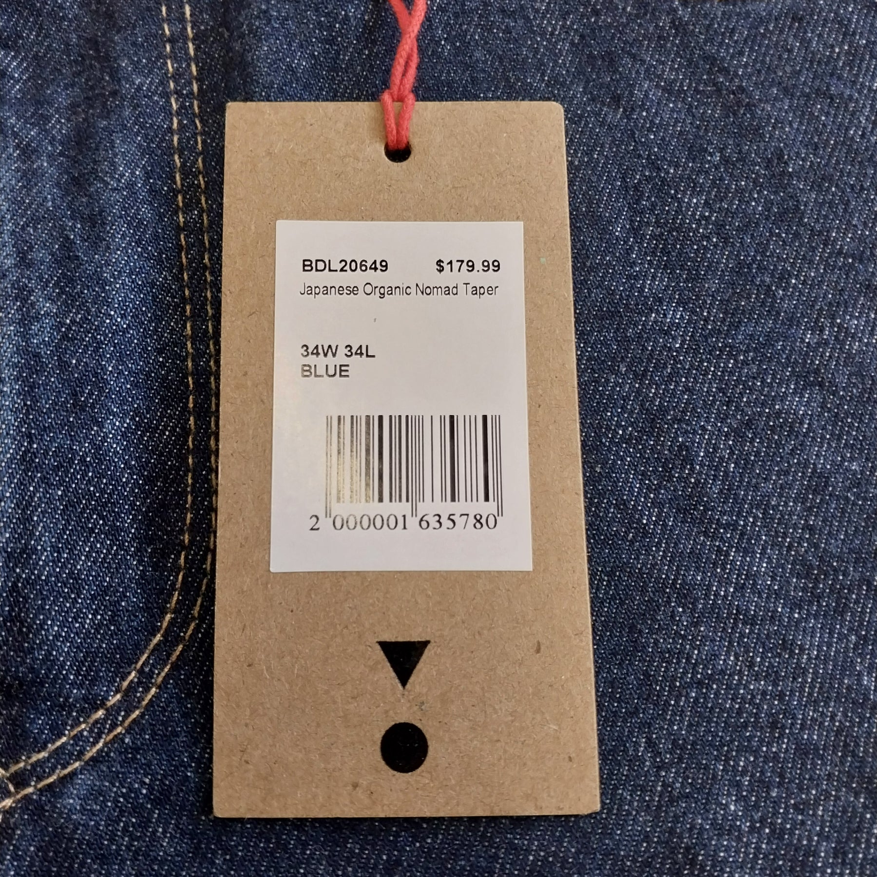 Step up your denim game with Barkers Men's Jeans, crafted from 100% Japanese organic cotton for unbeatable comfort and style. These brand-new, tag-attached jeans in size 34/34 Style Japanese Organic Nomad Taper. Designed in New Zealand, combining sleek silhouette with eco-friendly fabric. With a 44.5 cm flat waist, 87 cm inseam, and a 28 cm rise, they’re perfect for those who love quality and playful flair in their wardrobe. Slip into sustainable cool and make every step a statement!