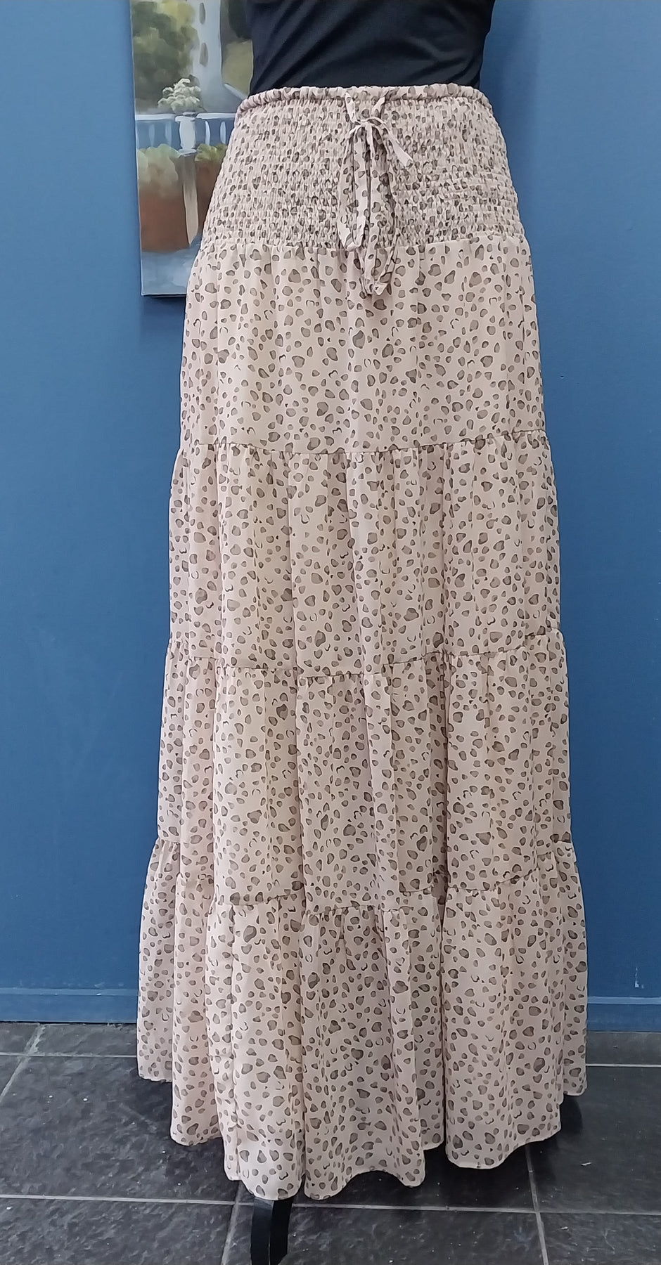 Embrace effortless style with this Brave + True long tiered skirt in a bold animal print. The wide shirred waistband with a handy drawstring ensures a comfy, adjustable fit, while the gathered tiers add playful volume and movement. Fully lined and measuring 103cm in length, this flowy skirt promises both comfort and flair. Perfect for twirling through your day in very good condition! This Listing is for the Skirt Only, Pair it with the matching blouse we also have for sale !