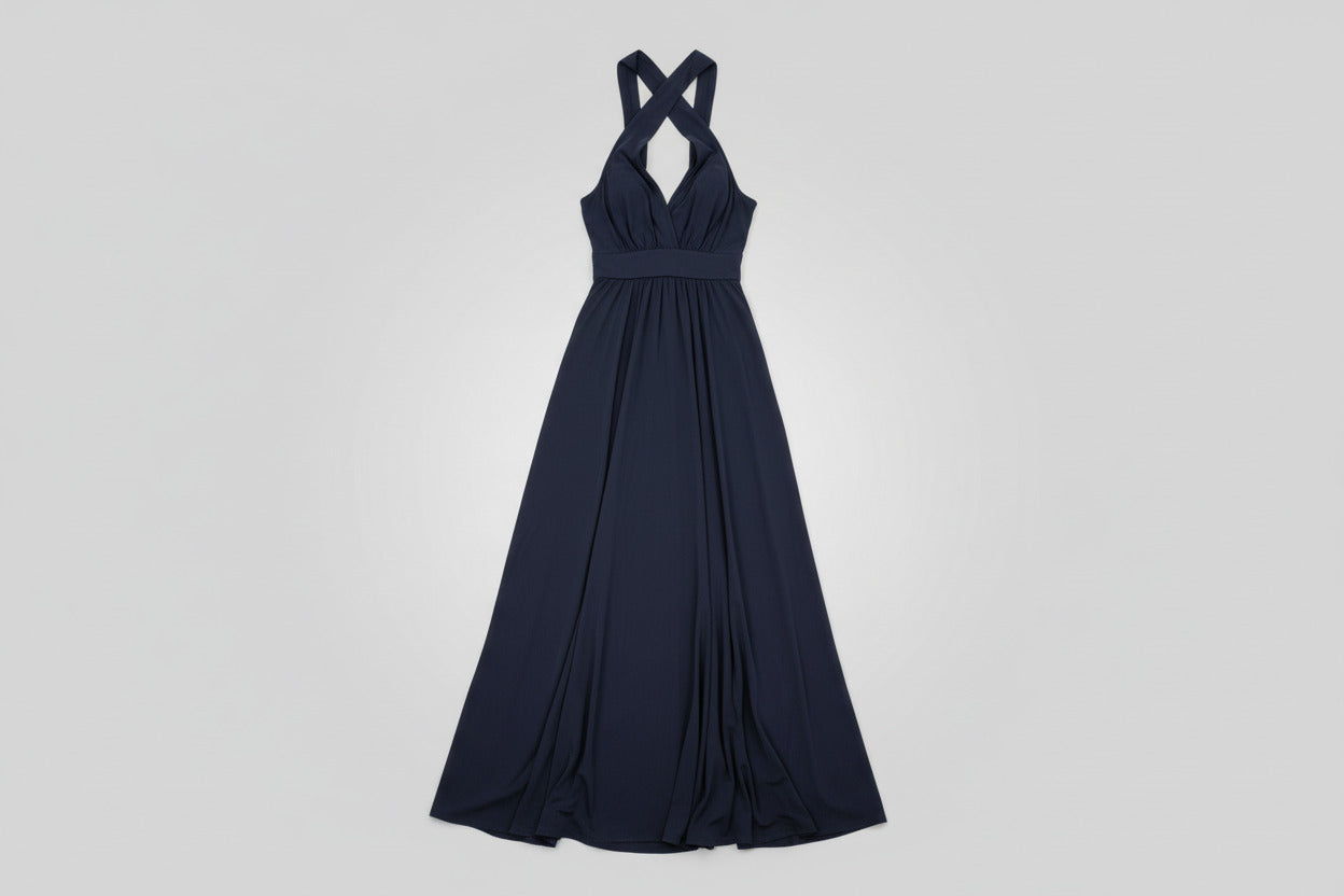 Elegant sleeveless maxi dress from M&S, designed for versatile styling. Features a flattering V-neckline and banded waist for definition. The wrap-around straps offer multiple styling options—wear them traditionally, cross them at the back, or drape them creatively for a custom look. Perfect for summer occasions, evening events, or casual wear. Comfortable and sophisticated, this dress transitions effortlessly from day to night.