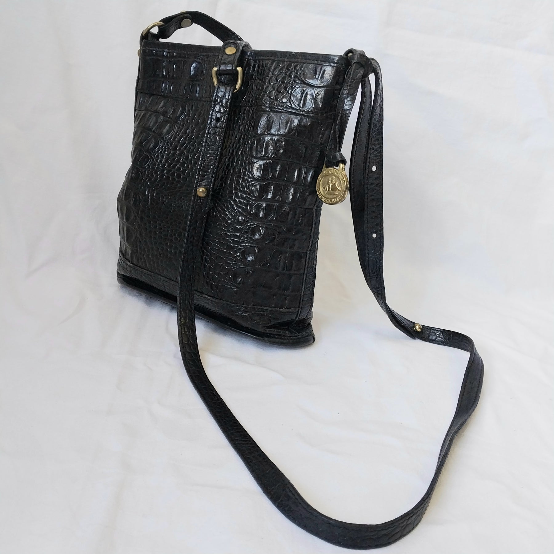 *Vintage Brahmin USA Crossbody Bag -Black- Croc Embossed Leather*