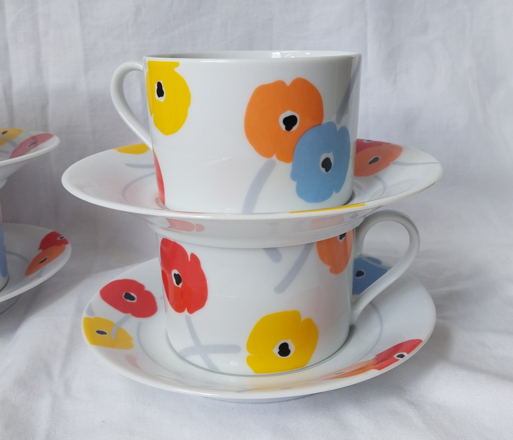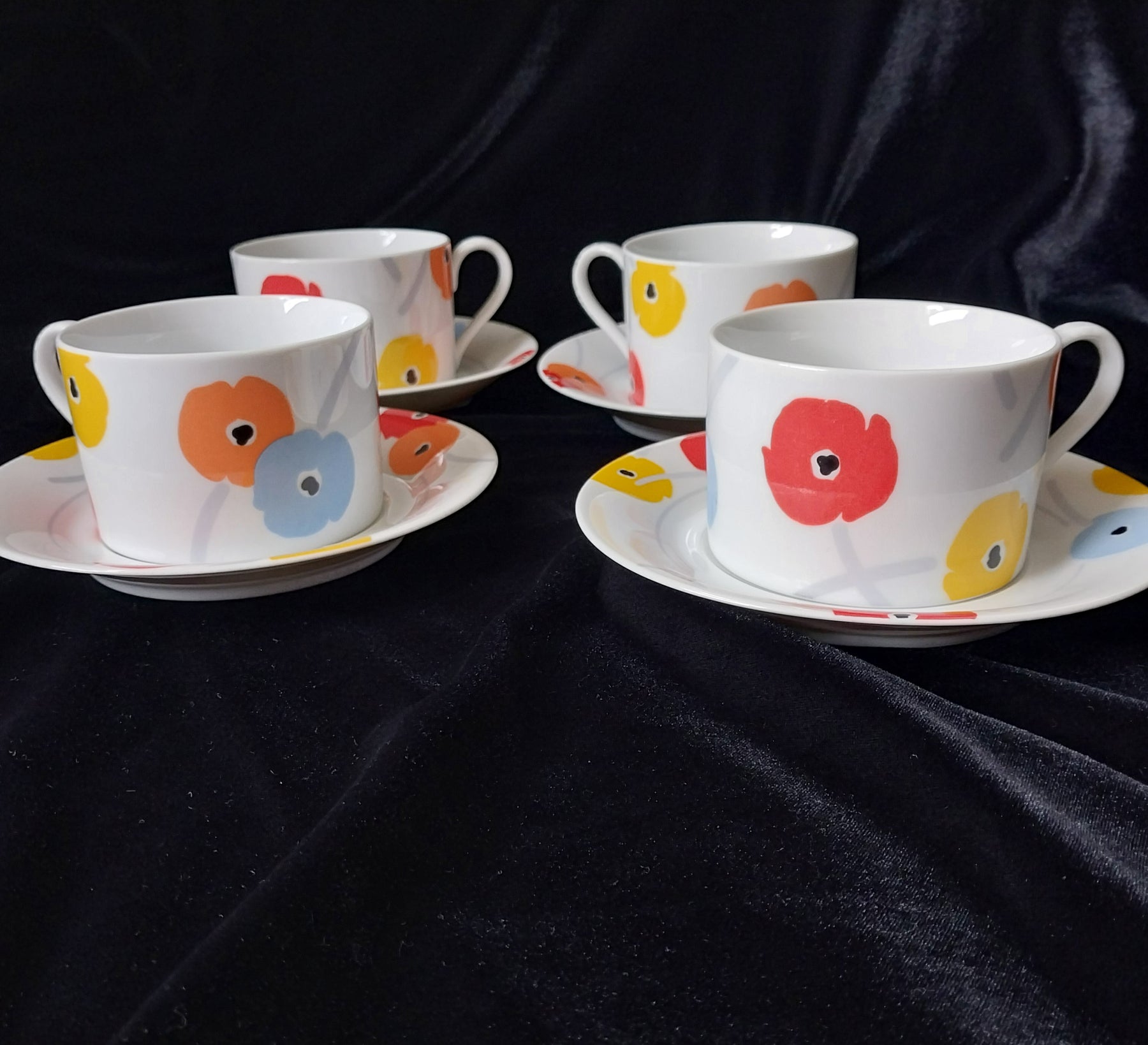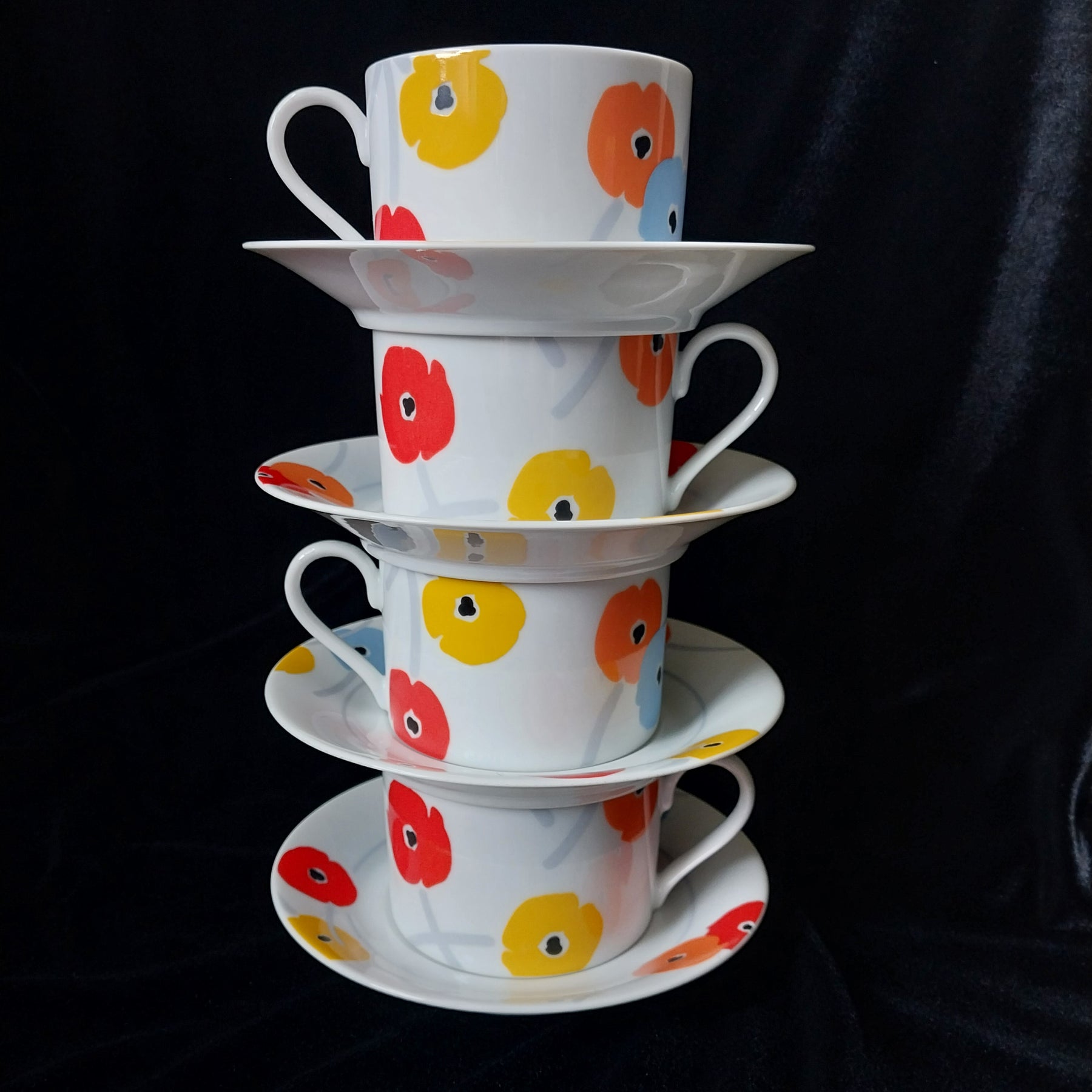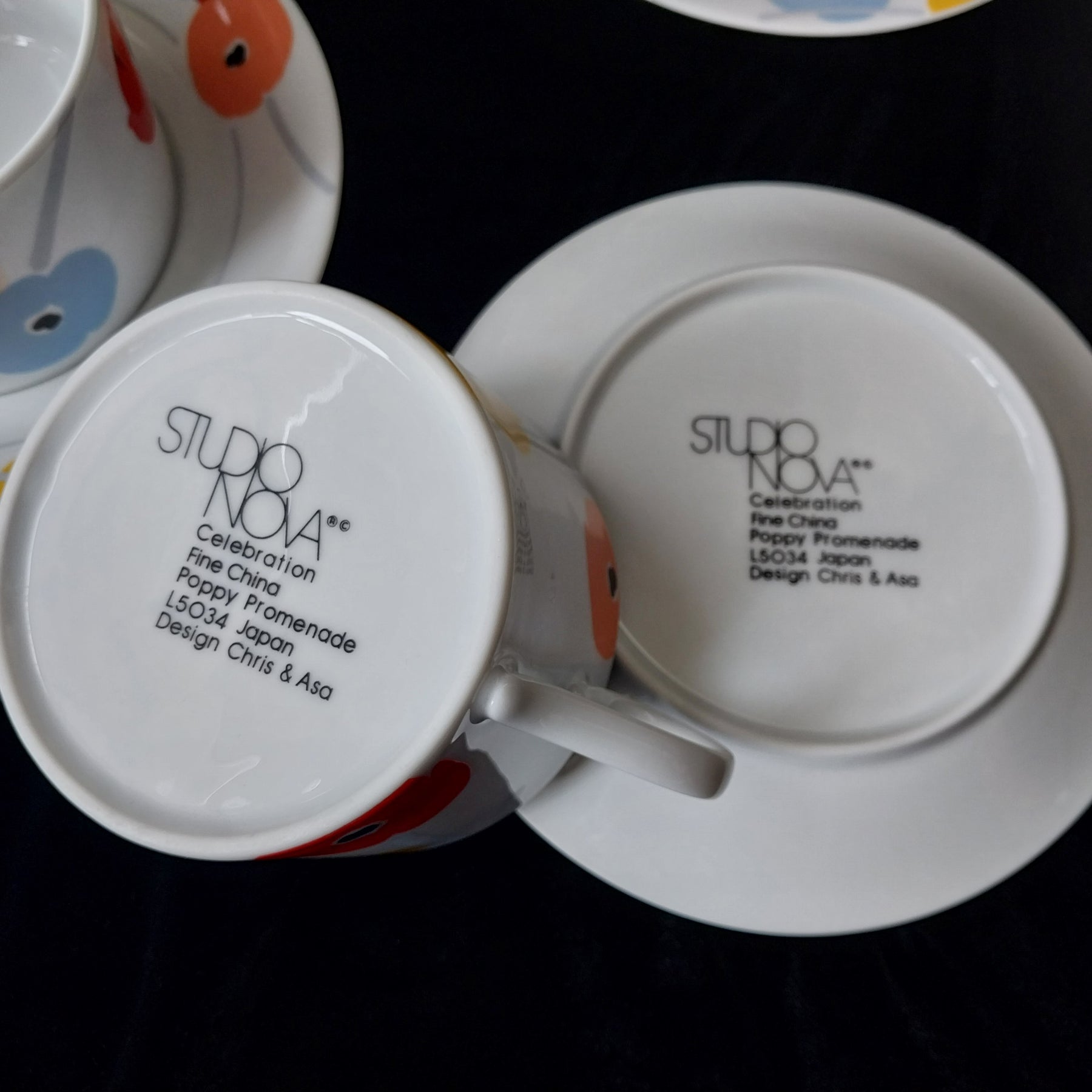 Step back in time with this delightful Vintage Studio Nova Poppy Promenade tea set! This 8-piece fine china collection from Japan features cups and saucers adorned with a retro poppy design. Manufactured in 1985 - 1986. Perfect for adding a splash of vintage to your tea time, each piece is in as-new condition ready to brighten your day. Embrace vintage vibes with every sip!